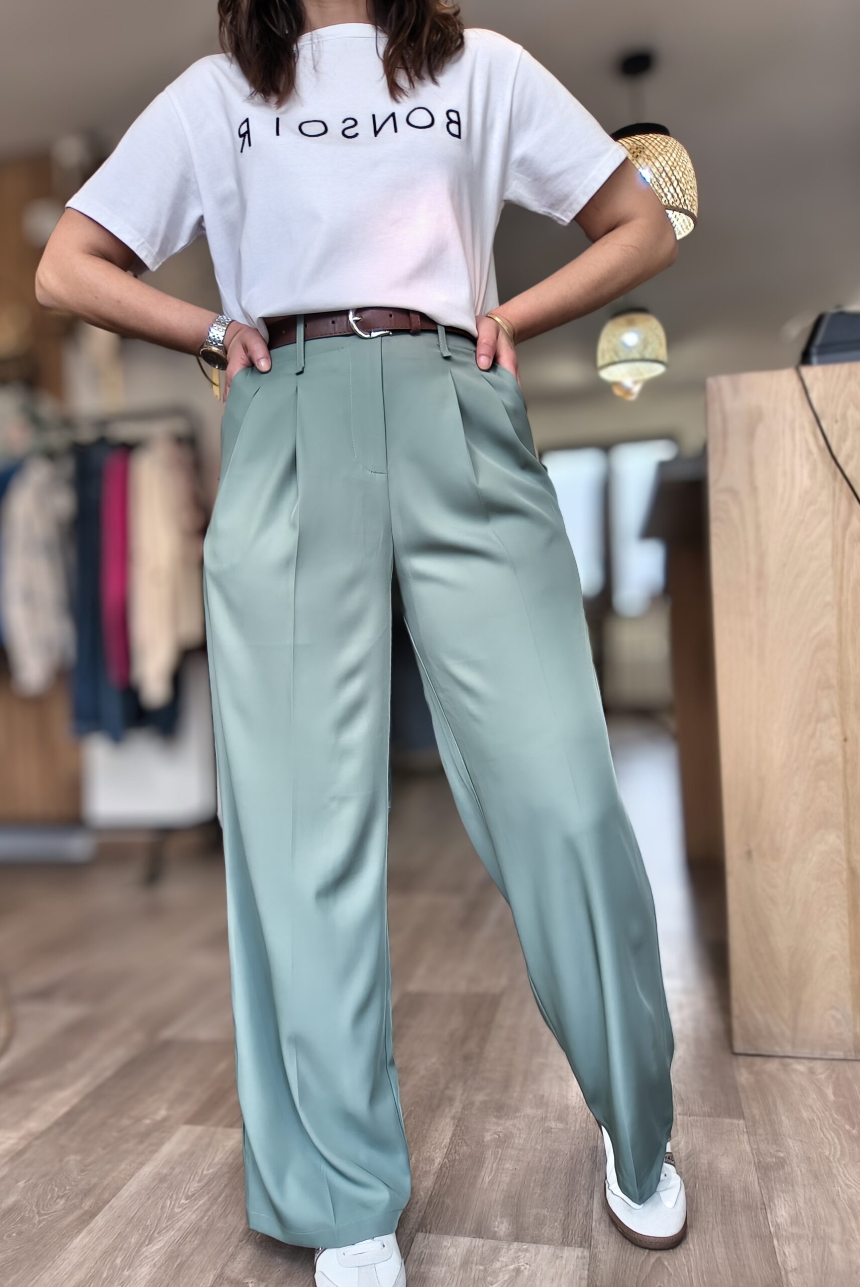 - Pantalon fluide couleur vert sauge agréable a porter