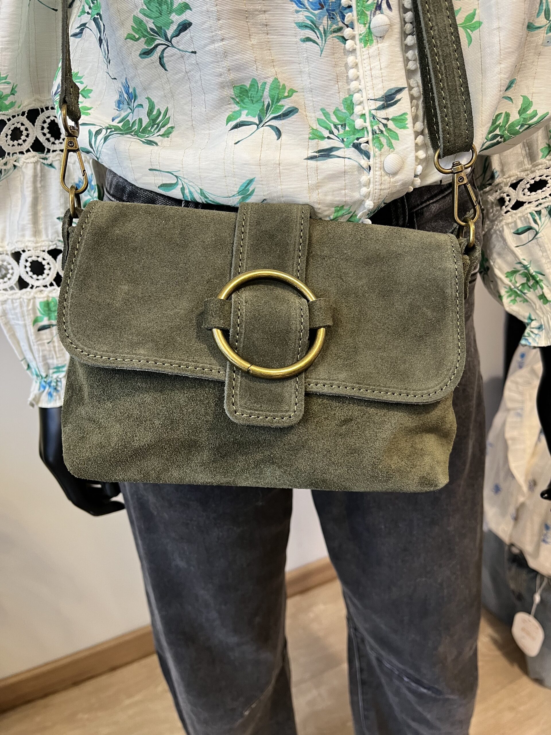 Sac à main vert kaki en cuir